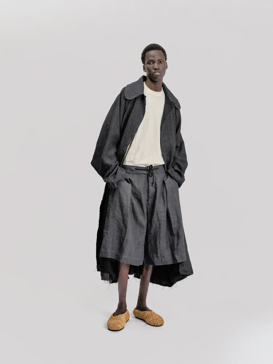 Farmer Shorts - Japanese Stonewashed Linen - Black
