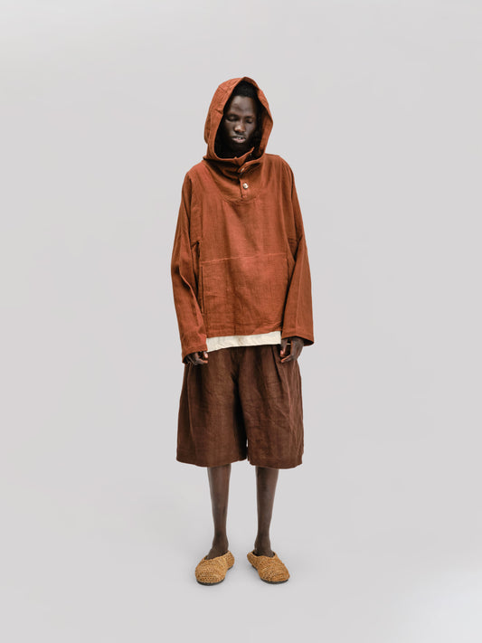 Farmer Shorts - Japanese Stonewashed Linen - Brown