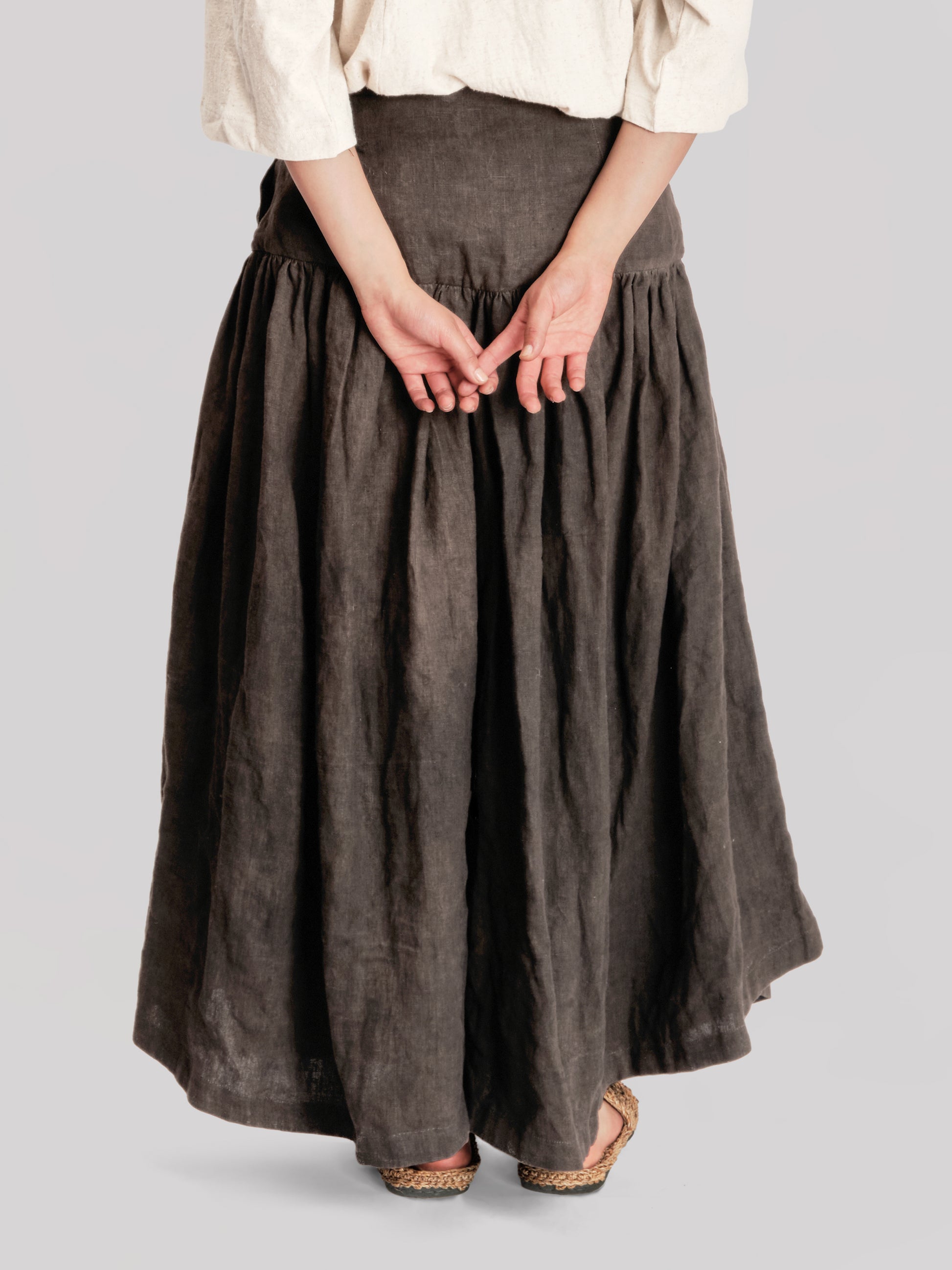 MATERIALS – Crafted from khaki green Japanese stonewashed linen, the fabric arrives already softened and supple, with a muted, earthy tone that carries subtle tonal variation across its surface. Lightweight and breathable, it moves freely with the body and continues to soften with each wear.