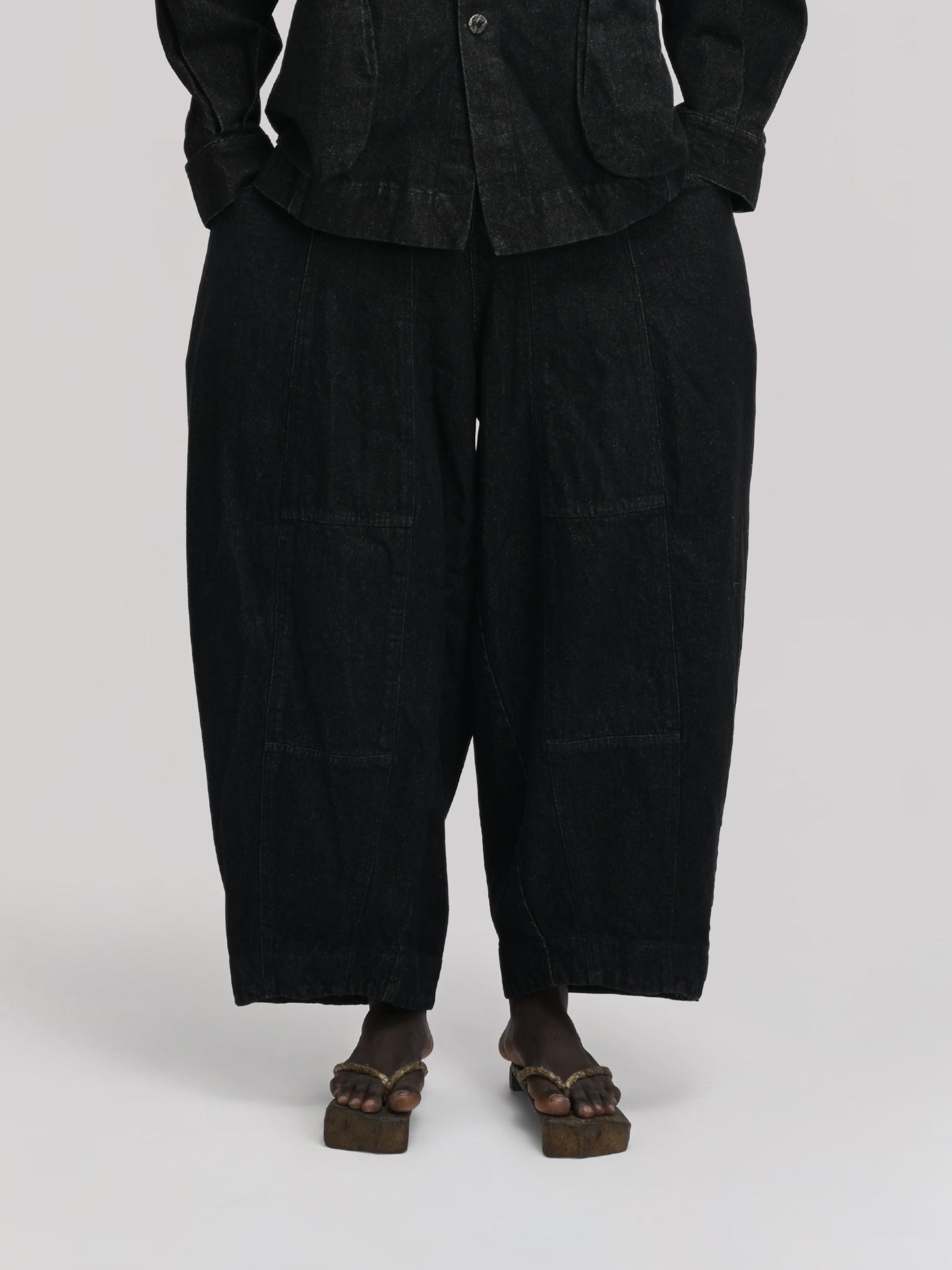 MATERIALS – Crafted from stonewashed Kojima denim in a deep black tone. Finished with natural shell buttons, bringing a refined yet organic touch to the design.