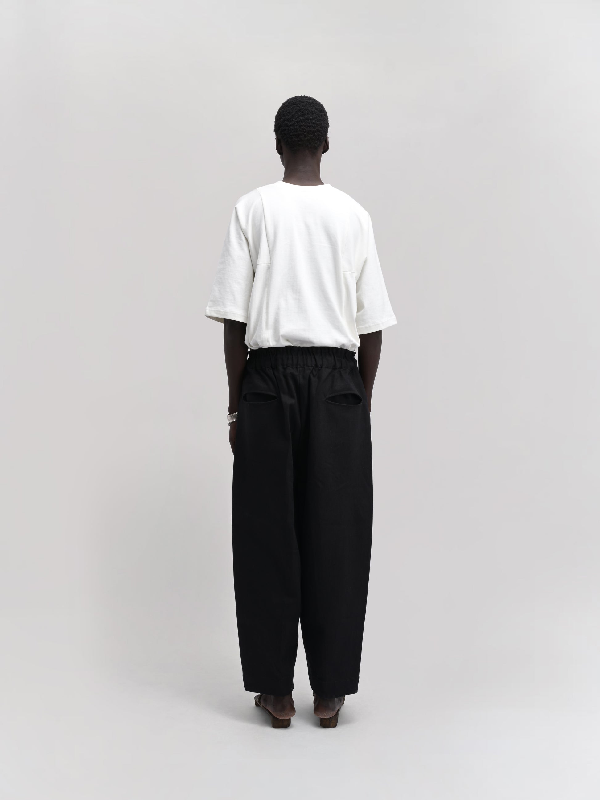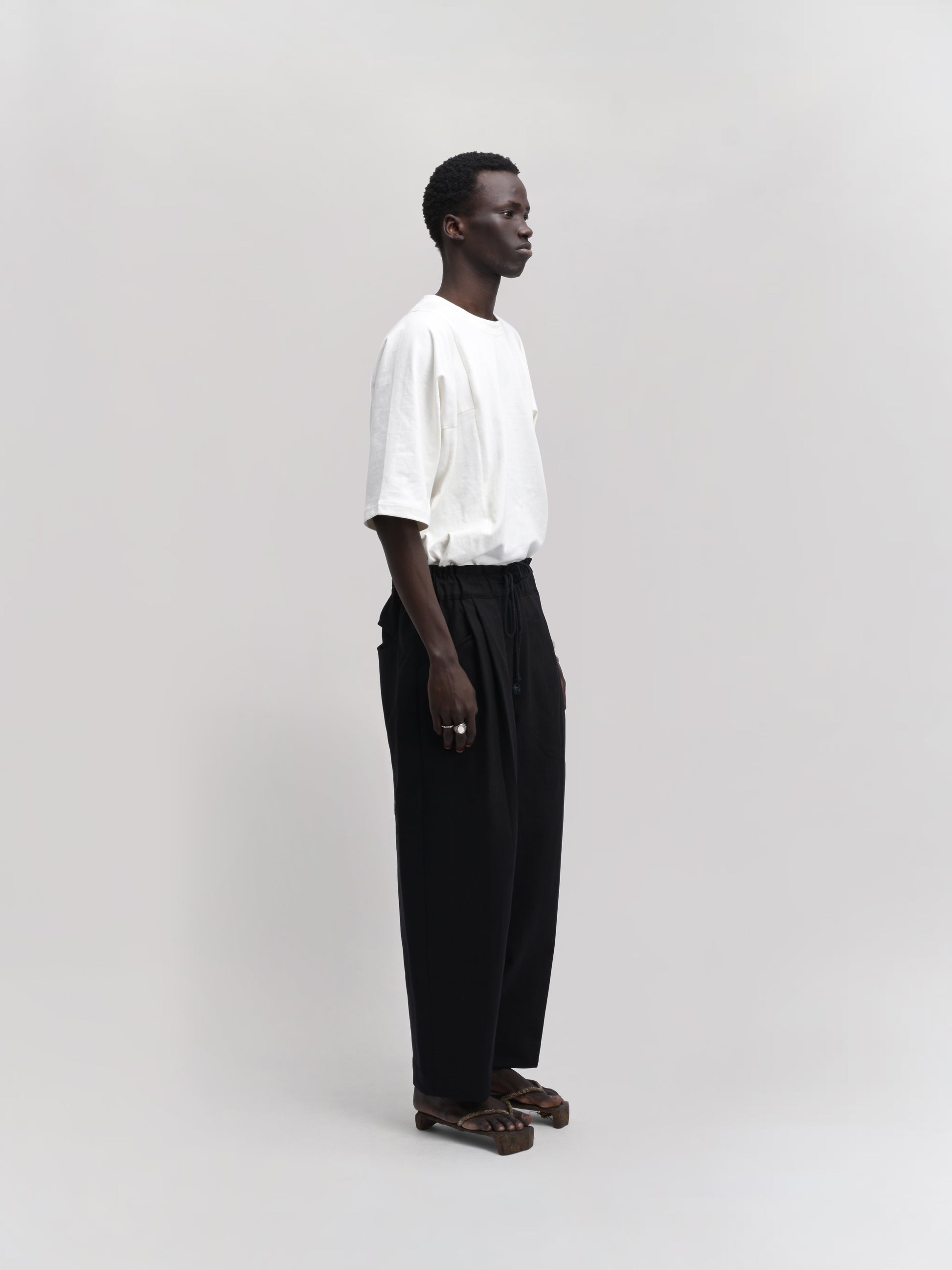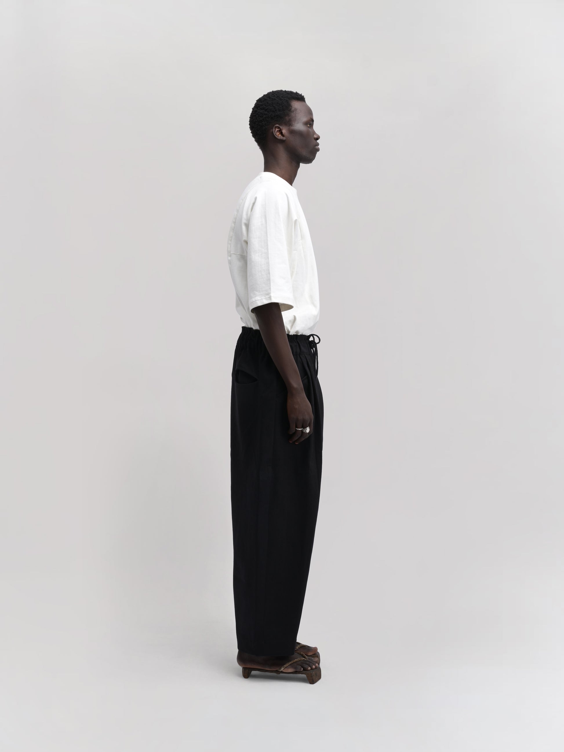 GARMENT – The Sailor Pant merges vintage-inspired tailoring with everyday comfort. Featuring an extra-wide waistband and double pleats for structure and ease, it’s secured with a sailor-style drawstring for adjustable fit. The flowing, relaxed leg offers effortless movement, making it equally suited for casual wear or elevated ensembles.