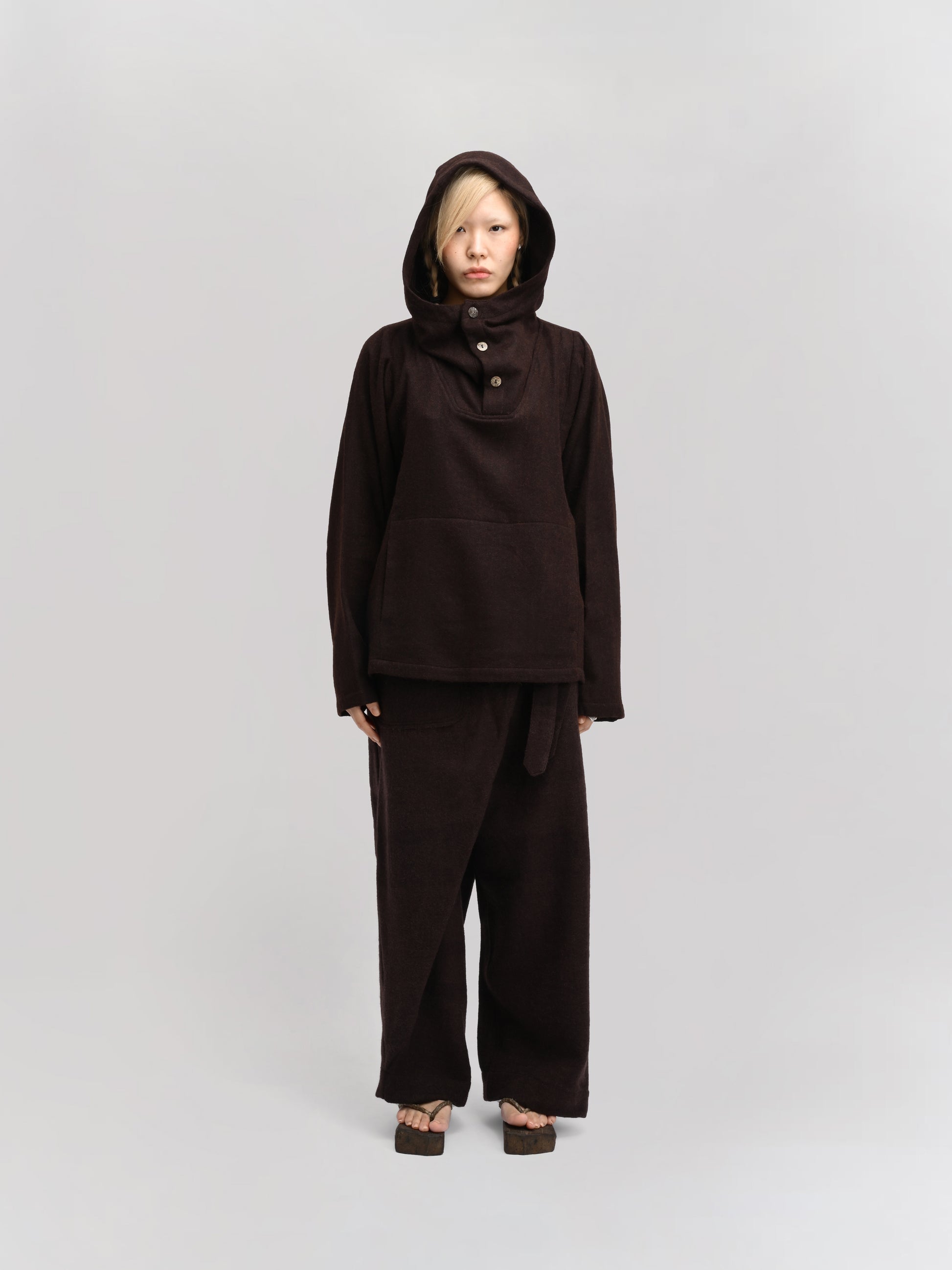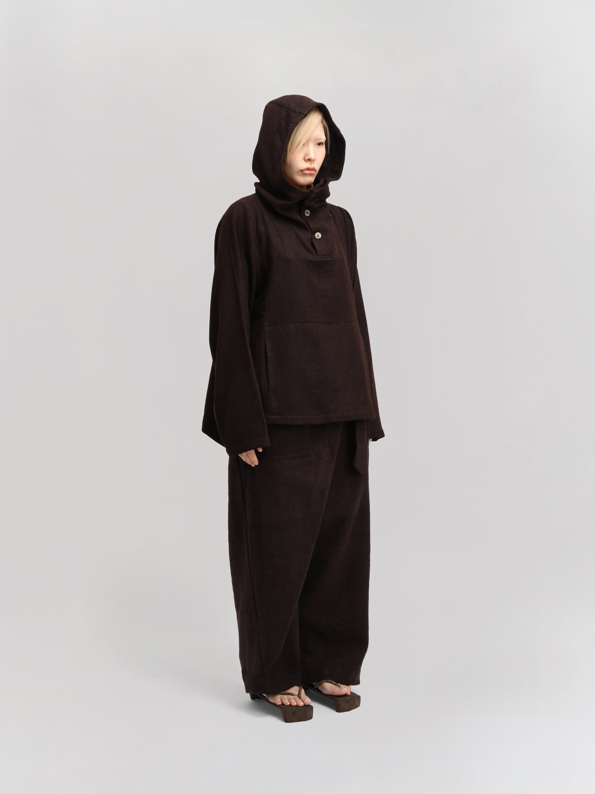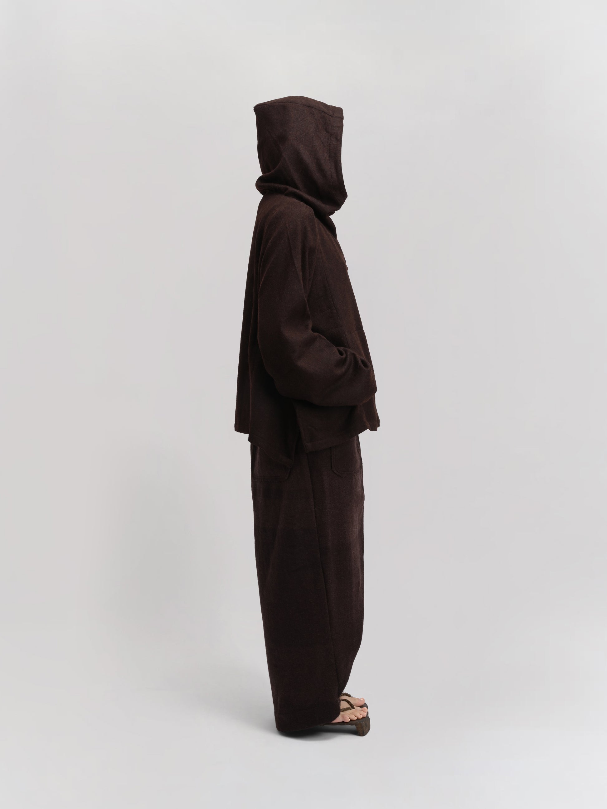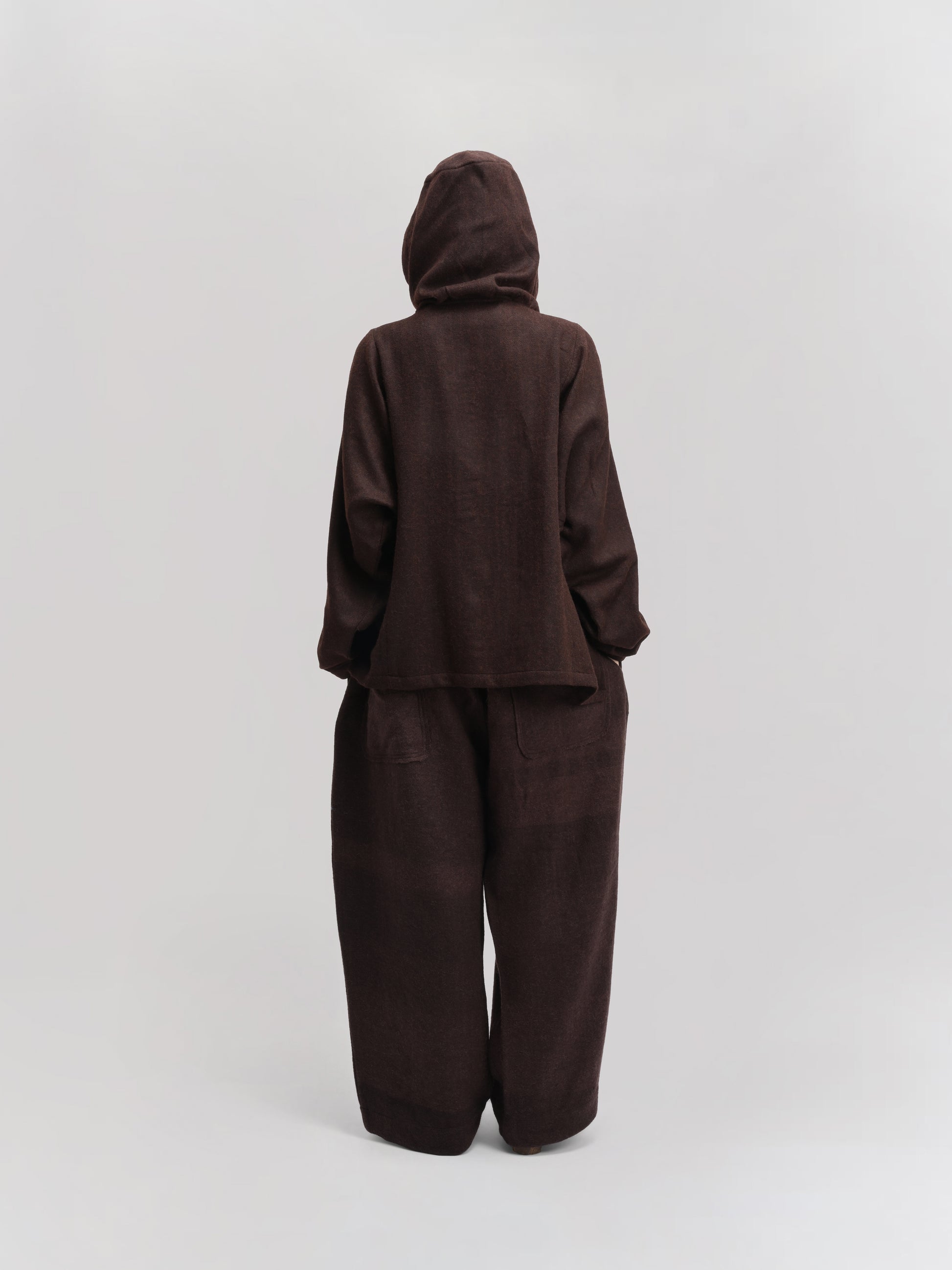 Fisherman Hoodie – Handwoven Wool – Chocolate Brown