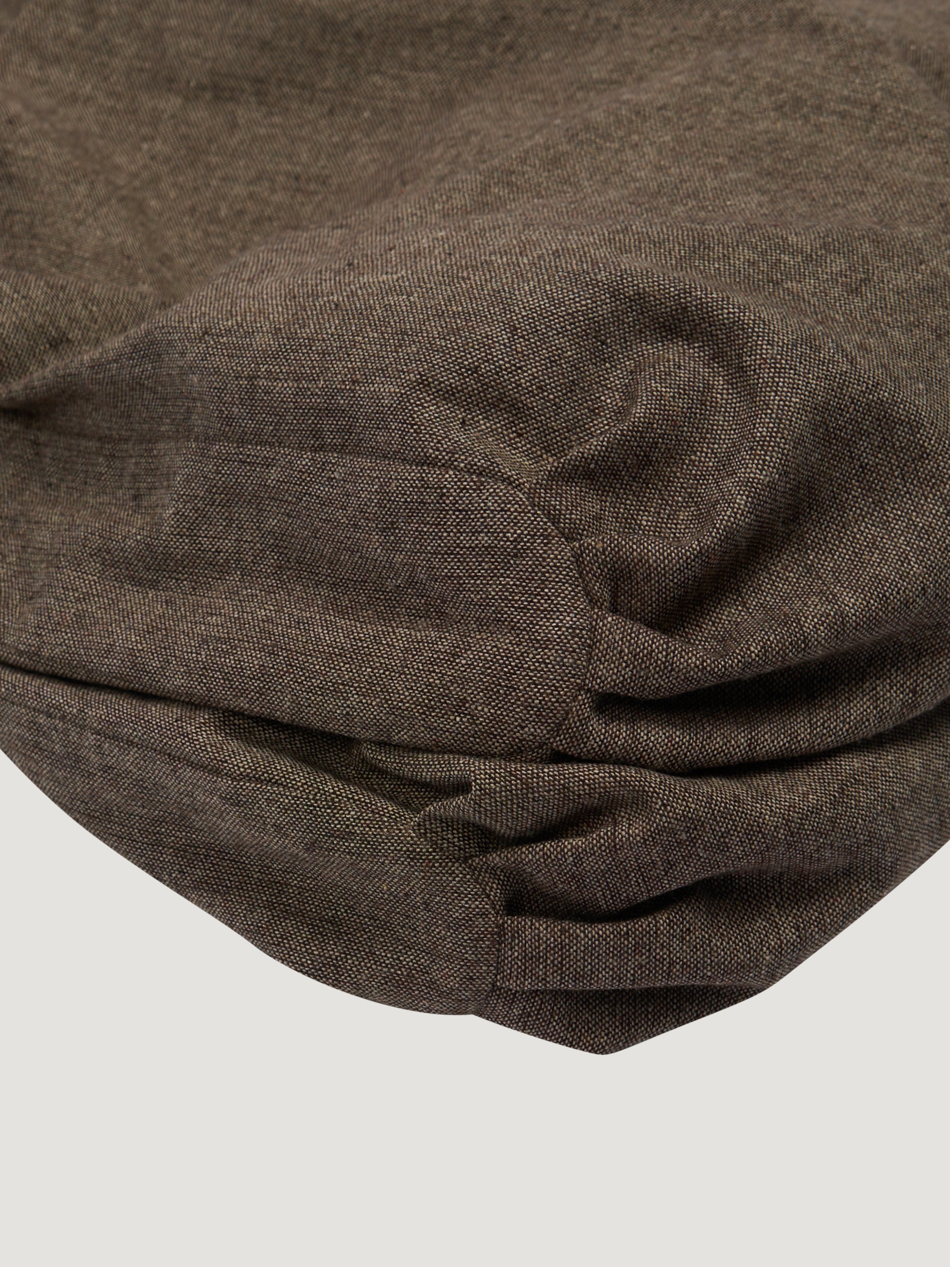 MATERIALS – Crafted from antique herringbone powerloom wool sourced from Japan, this lightweight weave carries a vintage-inspired texture with a soft yet resilient hand feel. The fabric’s subtle brownish taupe tone adds depth and warmth, lending the bag an earthy and timeless character that evolves beautifully with wear.