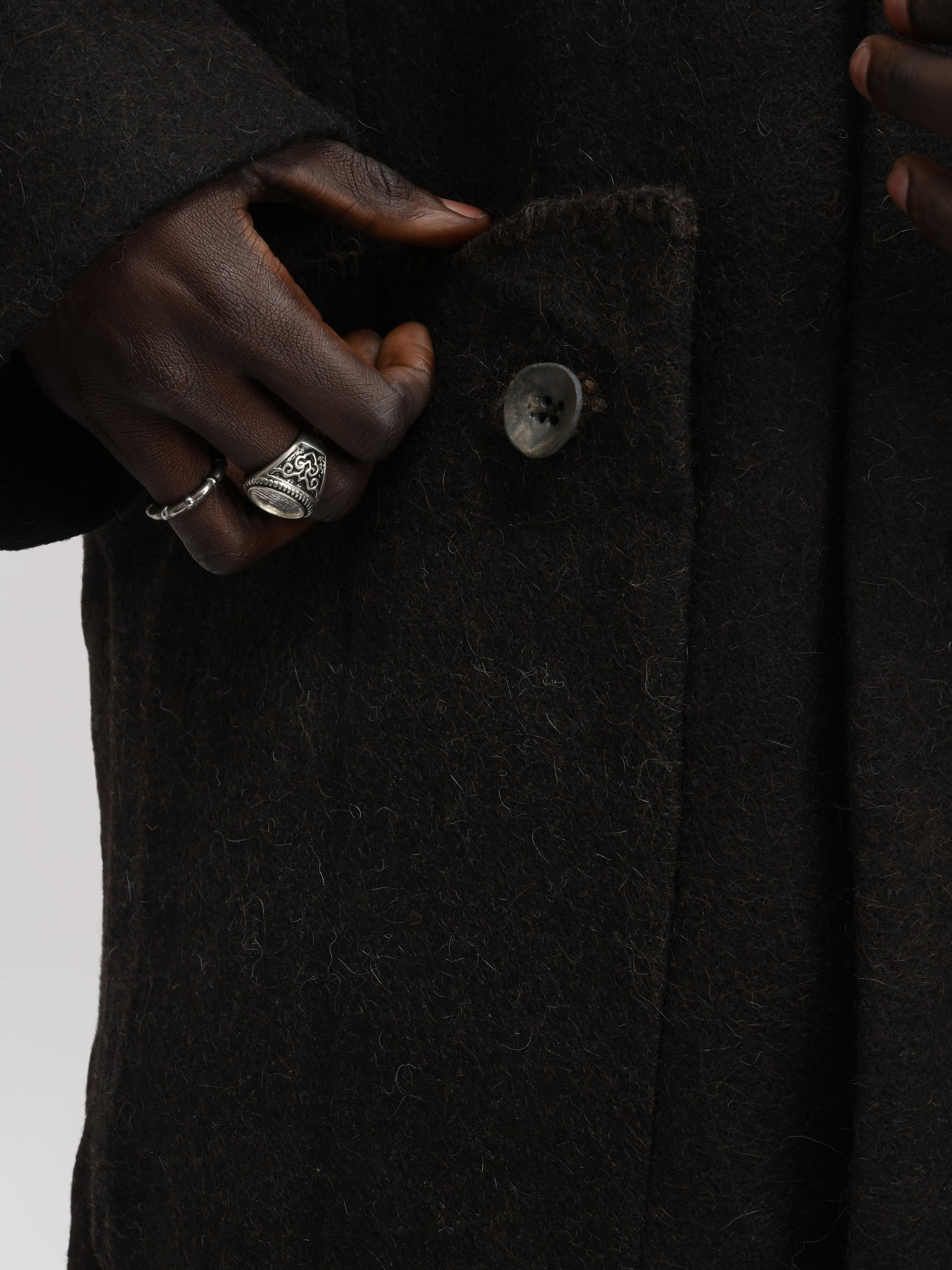 Farmer Coat – Handwoven Yak Wool – Dark Chocolate