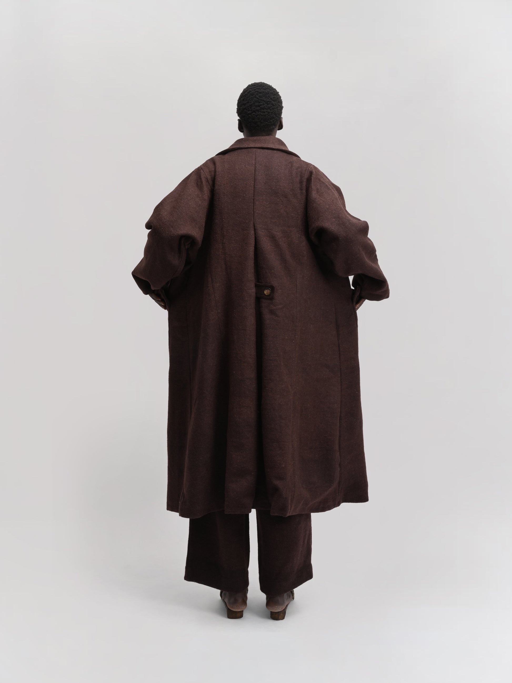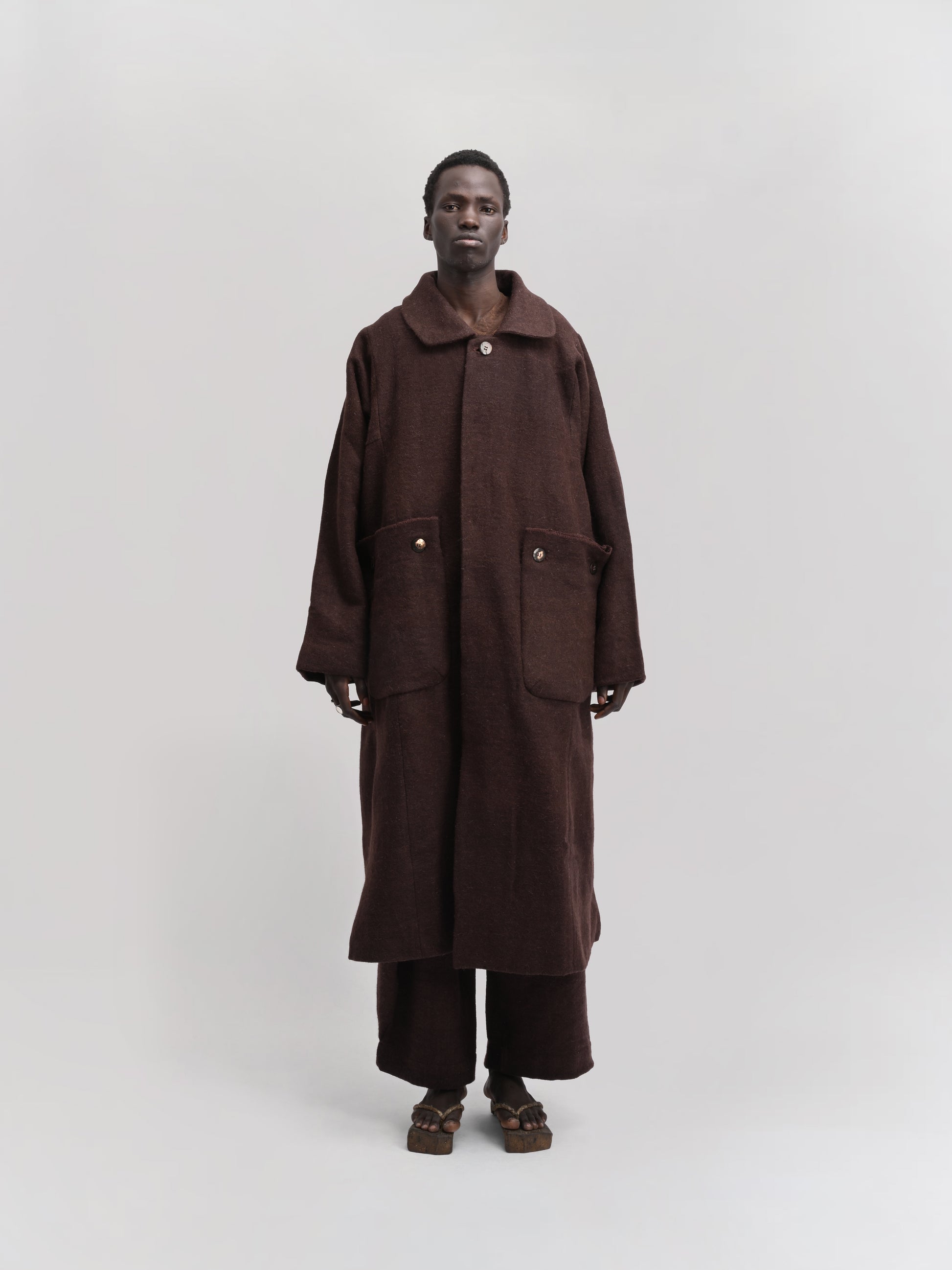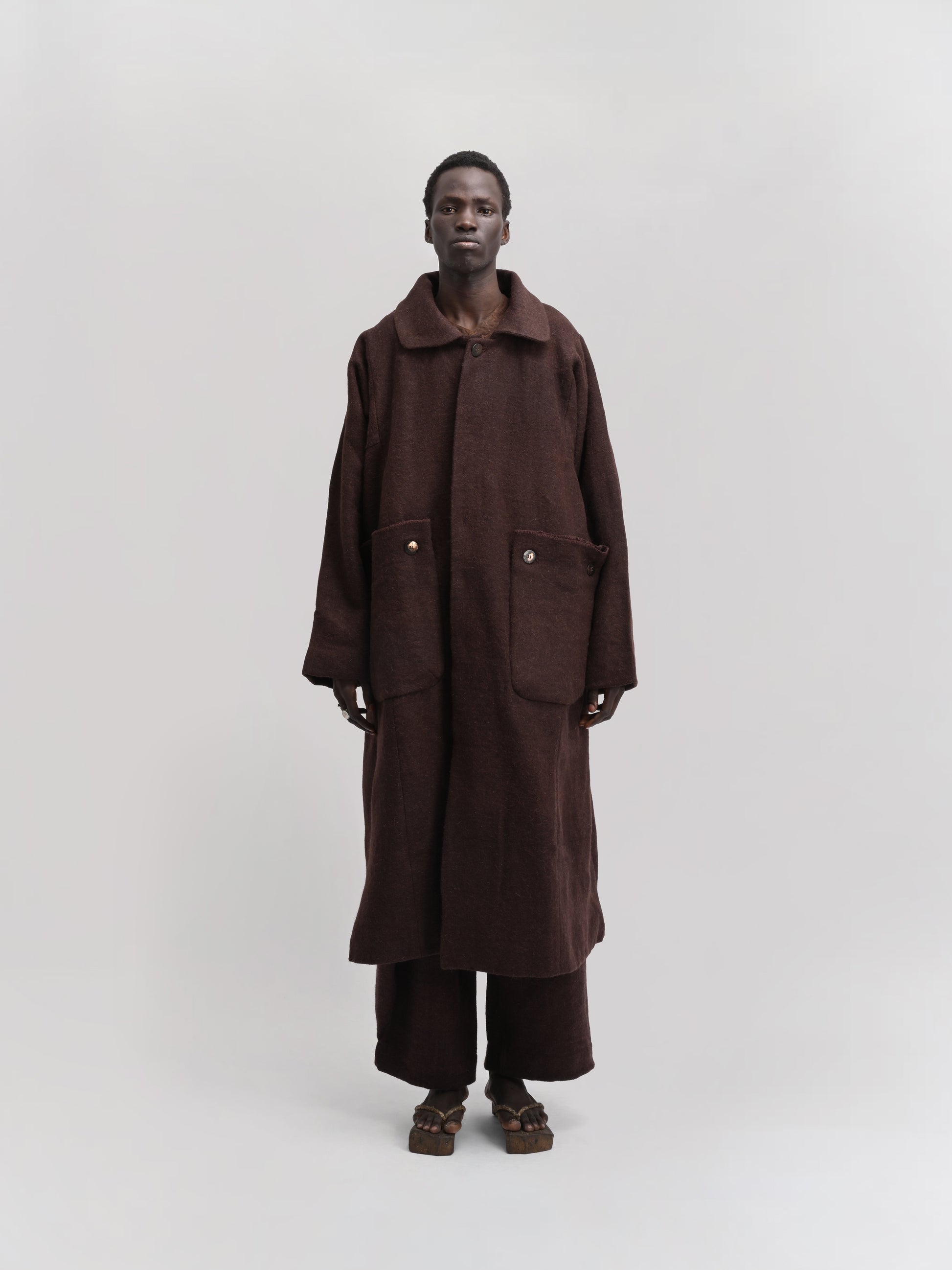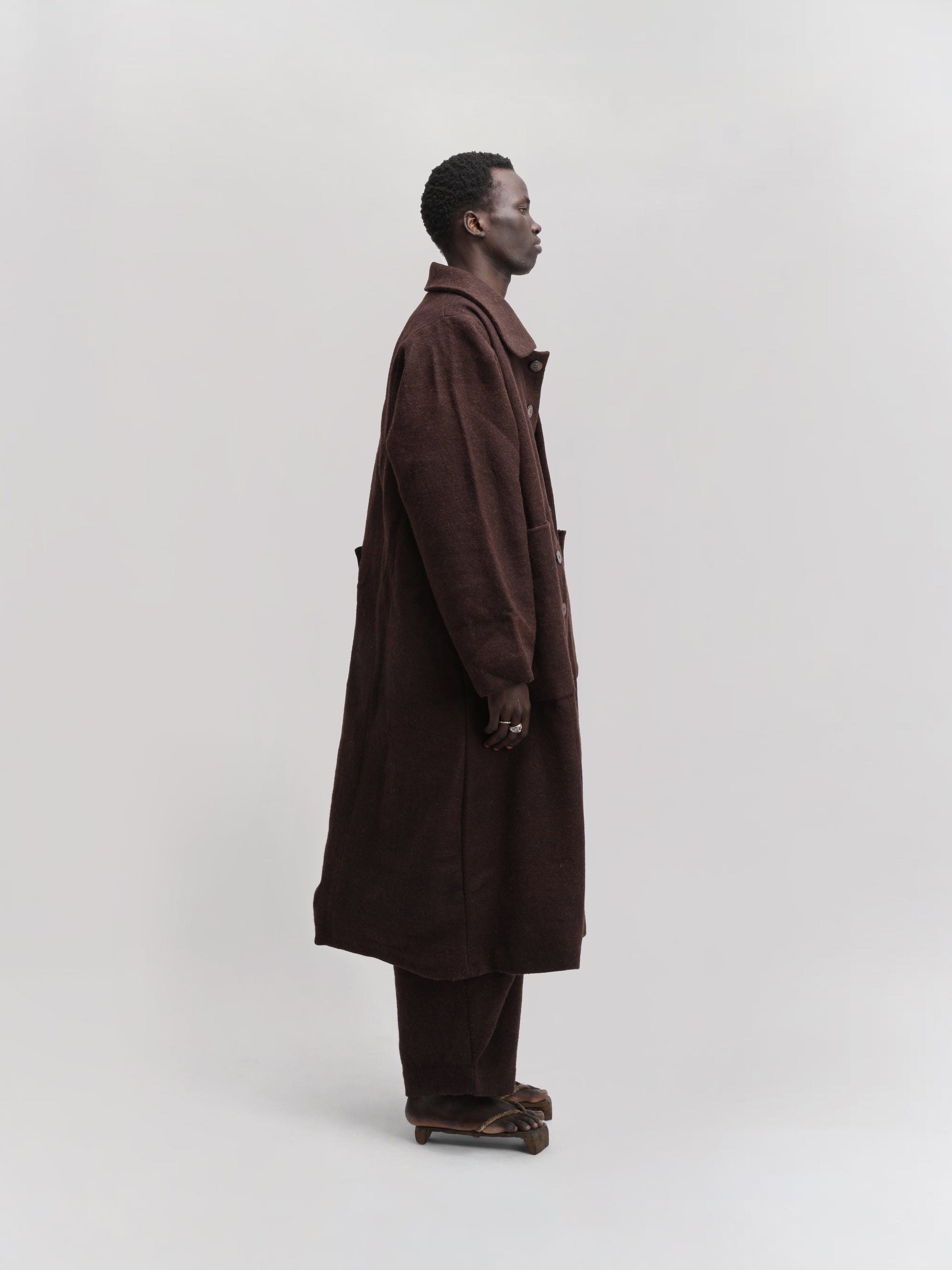 Farmer Coat – Handwoven Yak Wool – Rich Brown