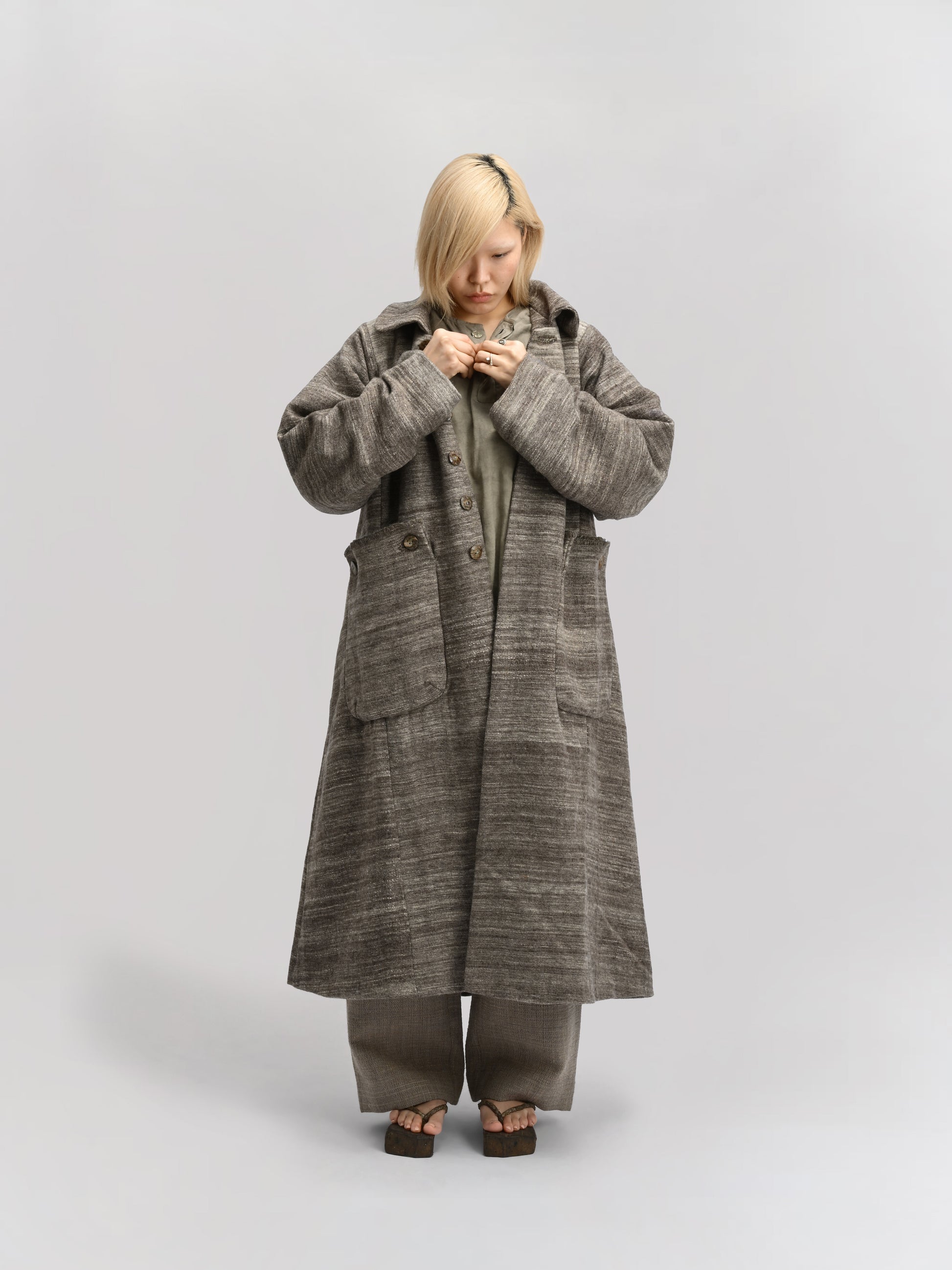 Farmer Coat – Handwoven Yak Wool – Soft Grey