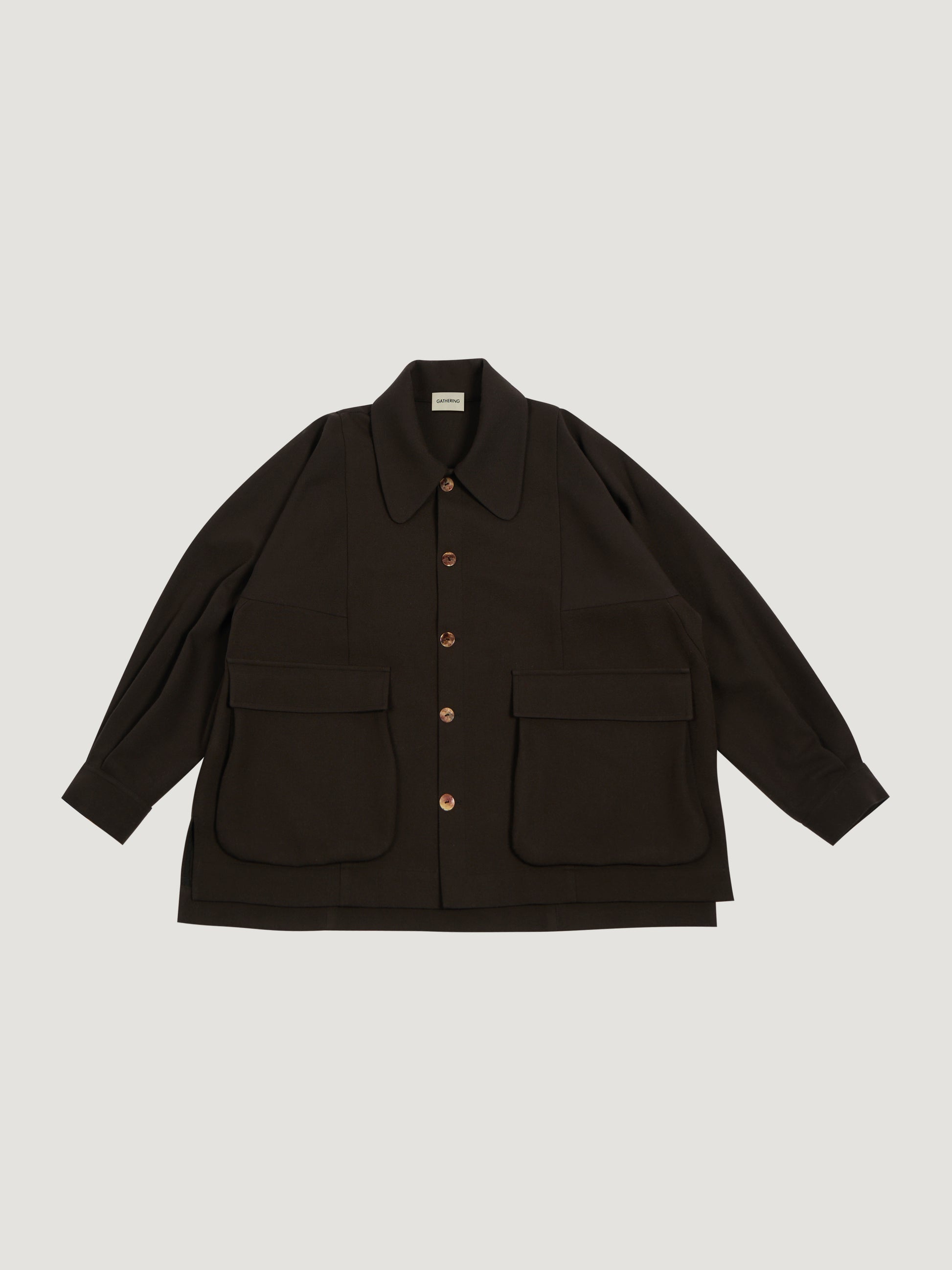 MATERIALS – Crafted from naturally dyed, boiled antique wool sourced from Japan. The fabric is dense yet breathable, offering warmth with a soft, tactile handfeel. Its natural dyeing process lends depth to the dark brown tone, creating a subtle richness that develops character over time.