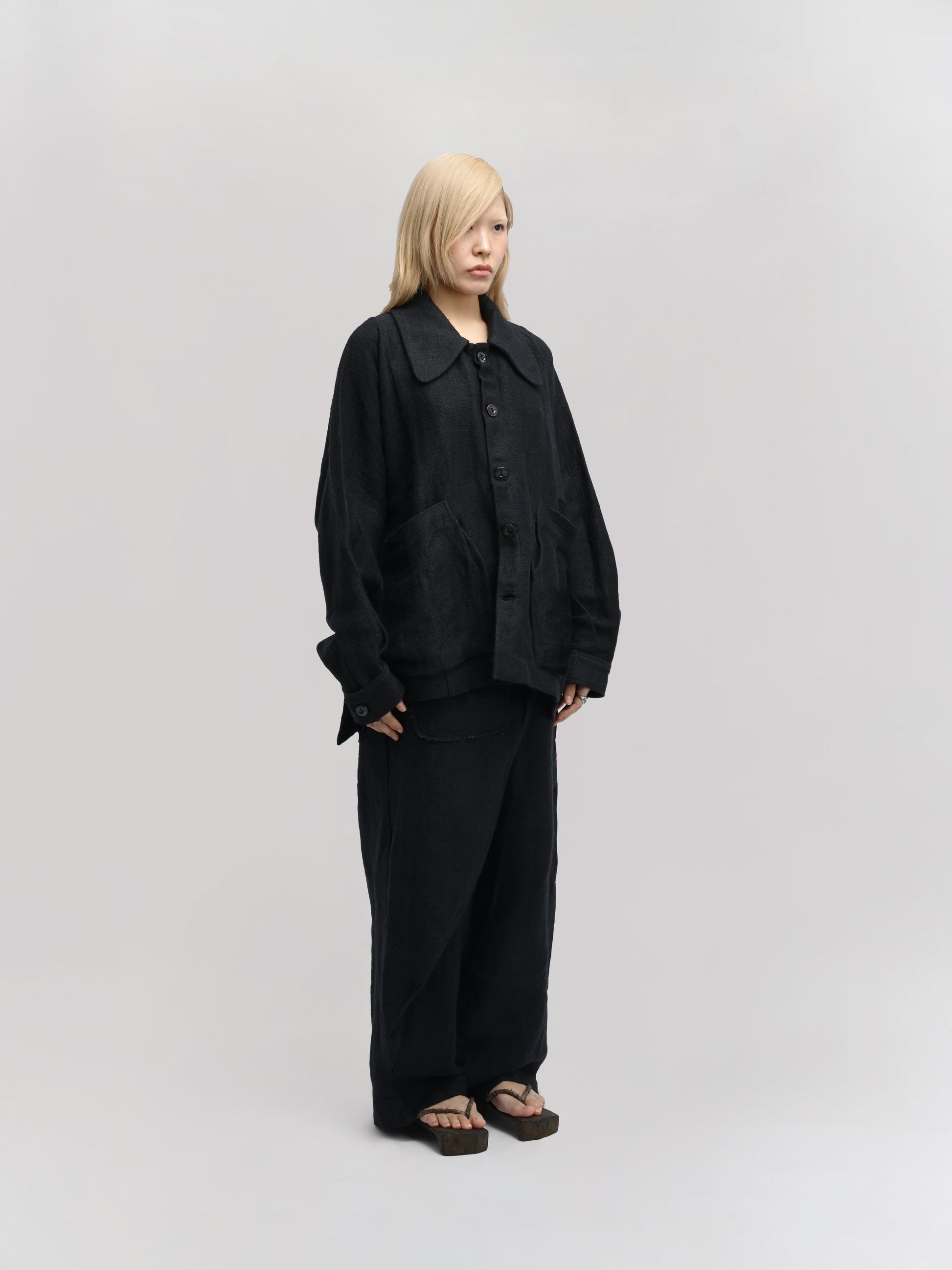 GARMENT – The Farmer Jacket offers a timeless silhouette with practical detailing. Designed with an oversized collar and roomy baggy flap pockets, it blends comfort with utility. Its classic cut makes it easy to layer, while the naturally dyed cotton ensures a breathable and eco-conscious wear.