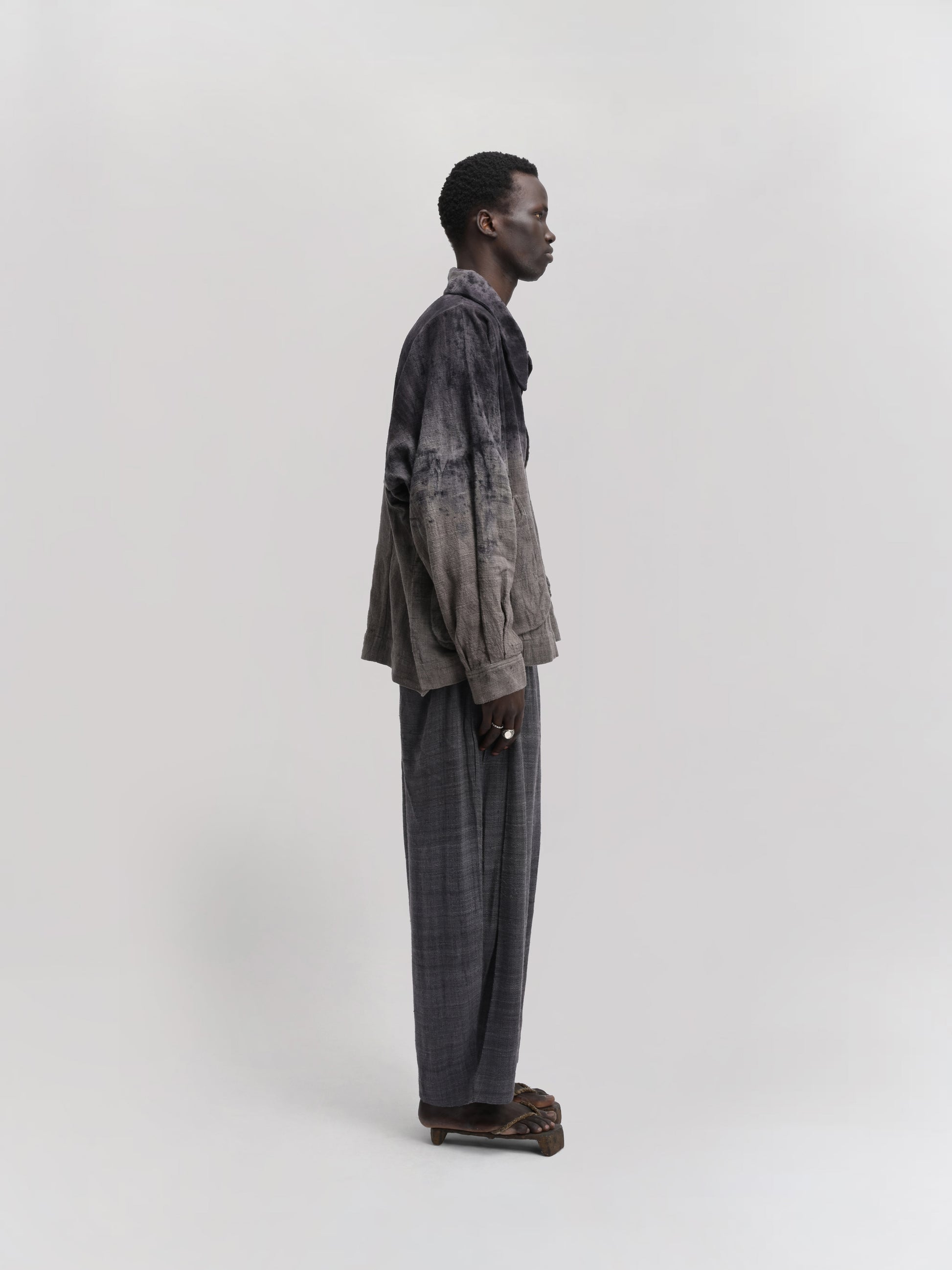 GARMENT – The Farmer Jacket combines a classic silhouette with relaxed functionality. Featuring an oversized collar and spacious, baggy pockets, it offers both comfort and practicality. The naturally dyed fabric produces a distinctive pattern, ensuring no two jackets are exactly alike.