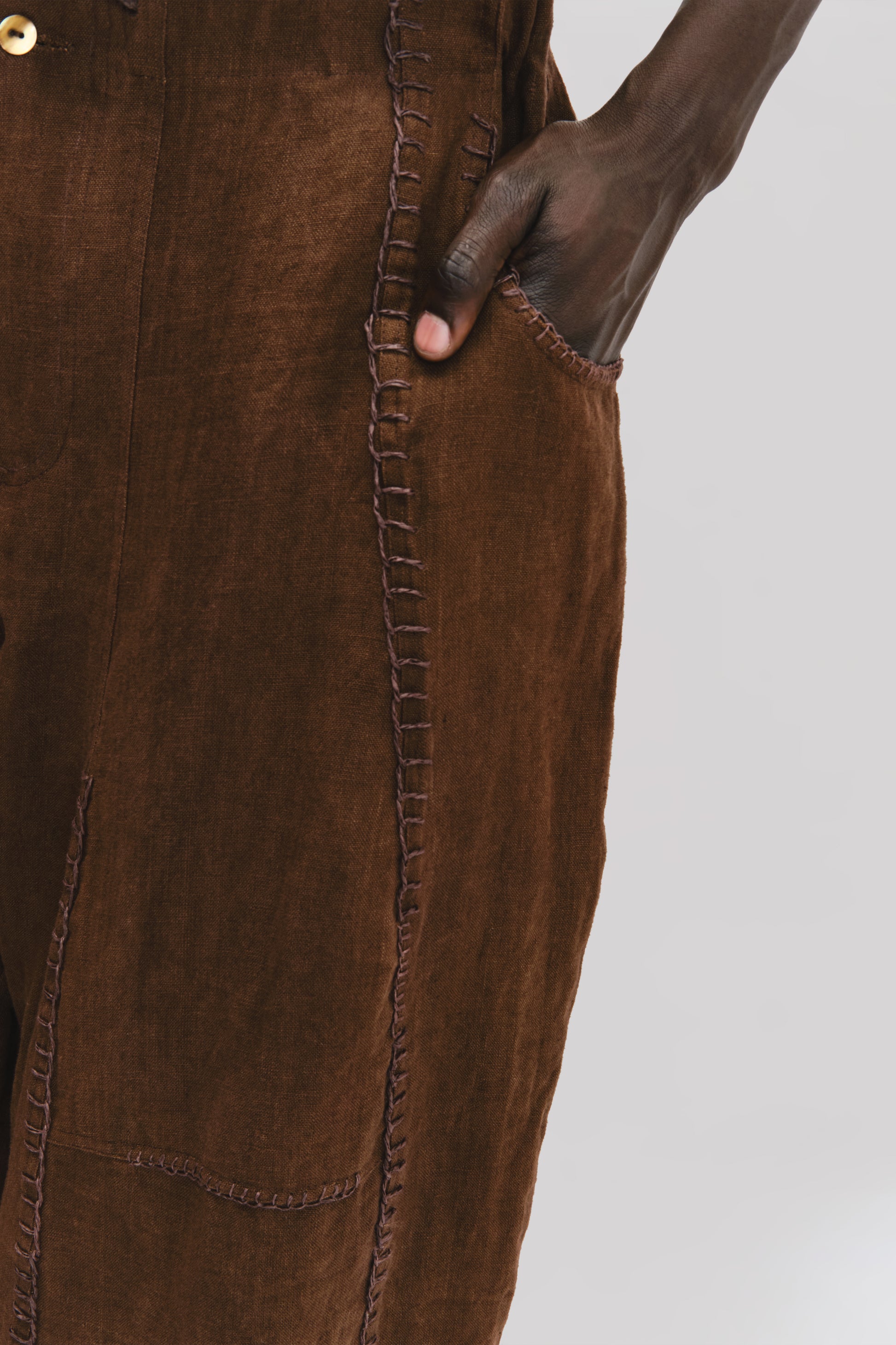 Fisherman Pant - Japanese Stonewashed Linen - Brown