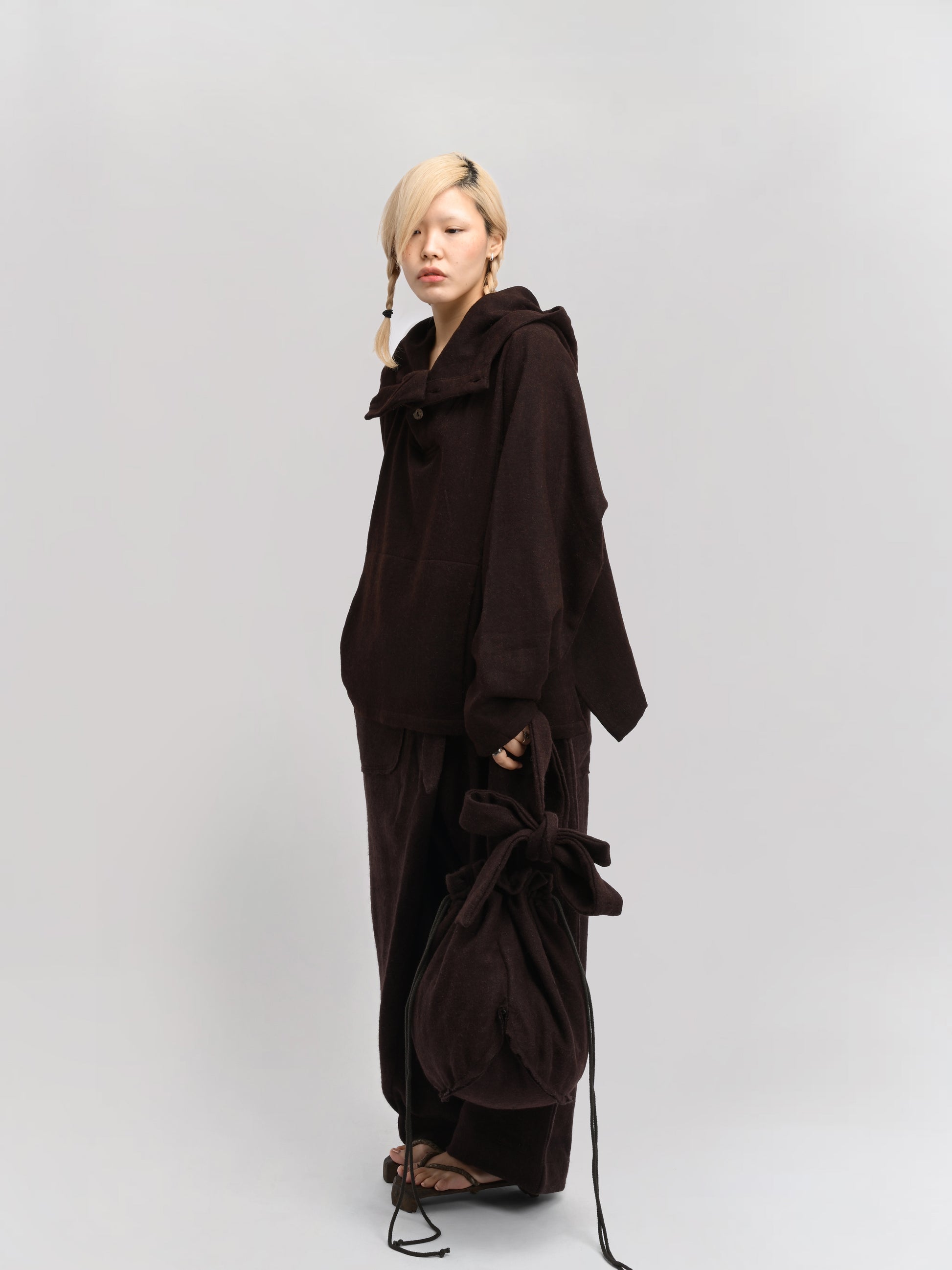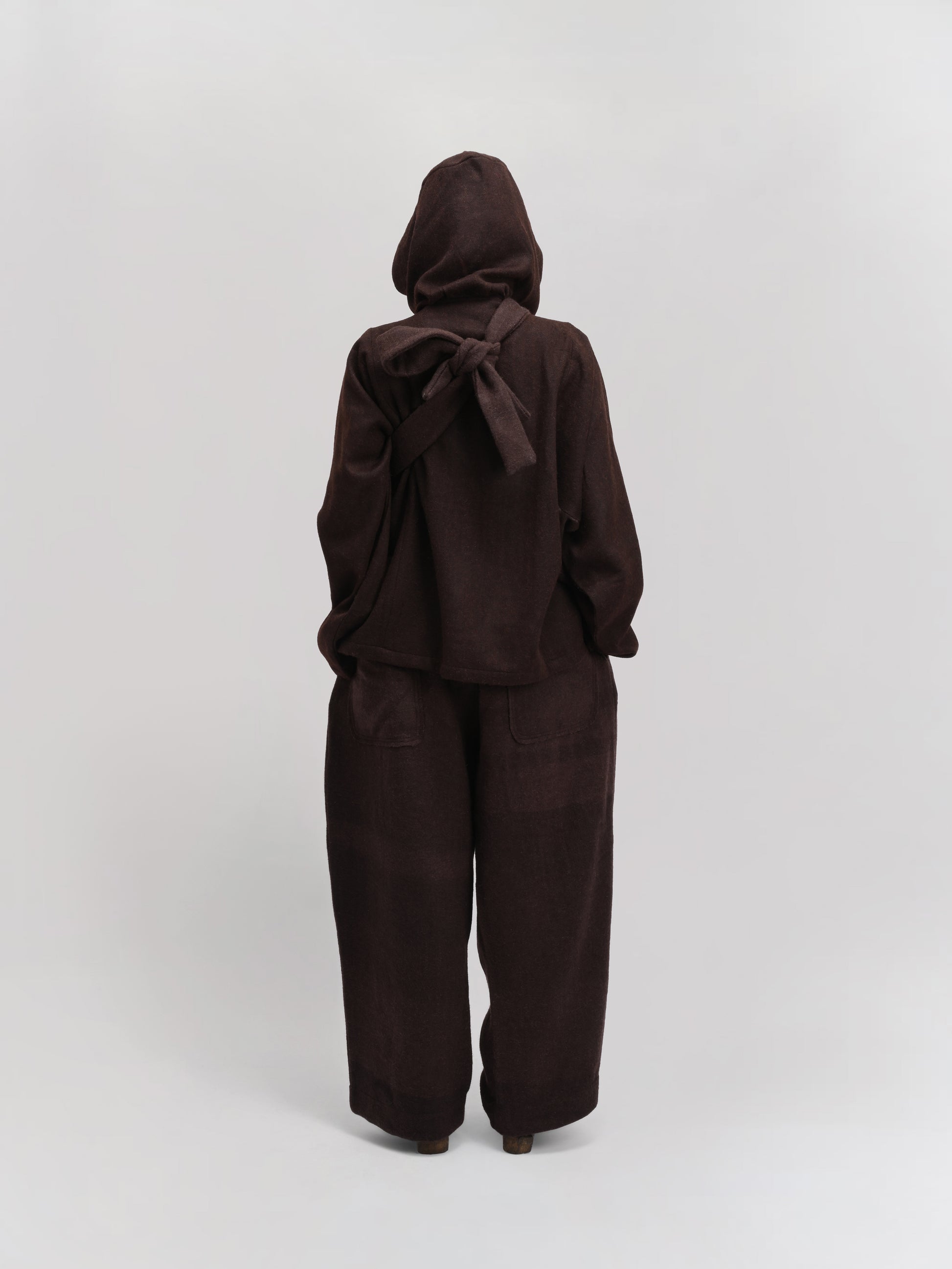 MATERIALS – Handwoven and hand-felted yak and sheep wool in a warm brown tone. Fully lined with soft cotton for a comfortable finish.